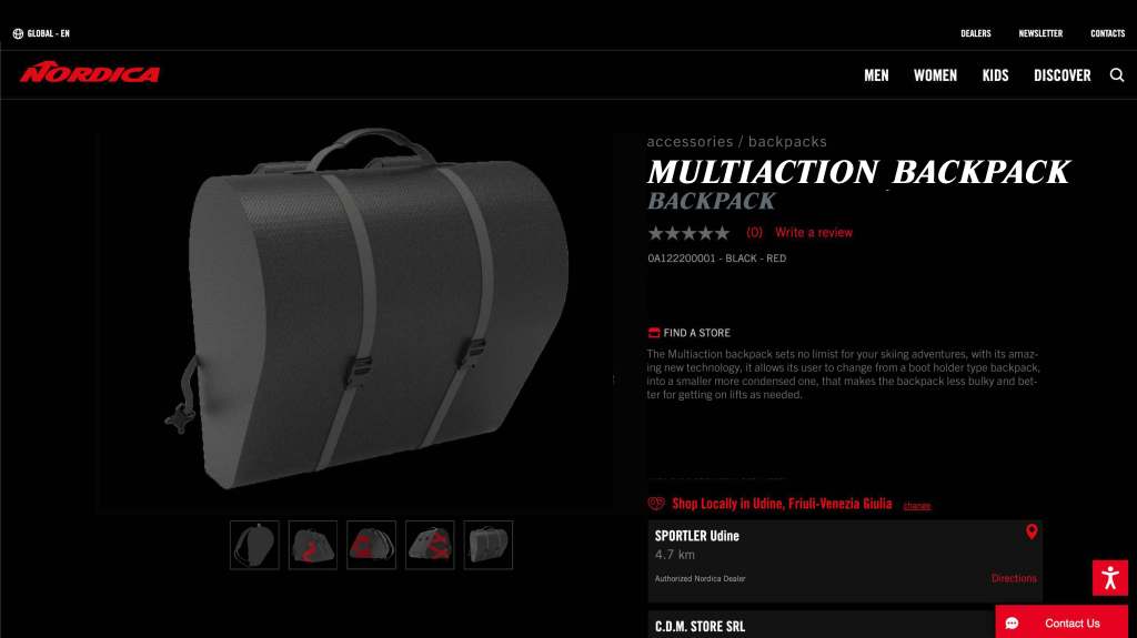 The Multiaction is a Backpack designed for different uses during your day of skiing. It has the ability to carry everything you need before you get on your skis, and also when you’re on them by making itself smaller through the use of zippers.